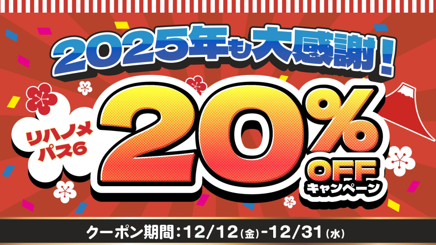 【今年最後のオトクな機会】2025年も大感謝!リハノメパス6 20%OFFキャンペーン