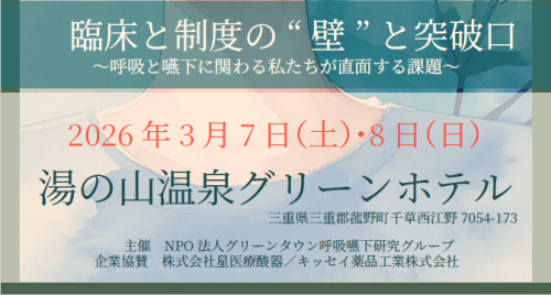 NPOグリーンタウン呼吸嚥下研究グループ 大会長:井上登太 (みえ呼吸嚥下リハビリクリニック院長/NPOグリーンタウン呼吸嚥下研究グループ 代表) |