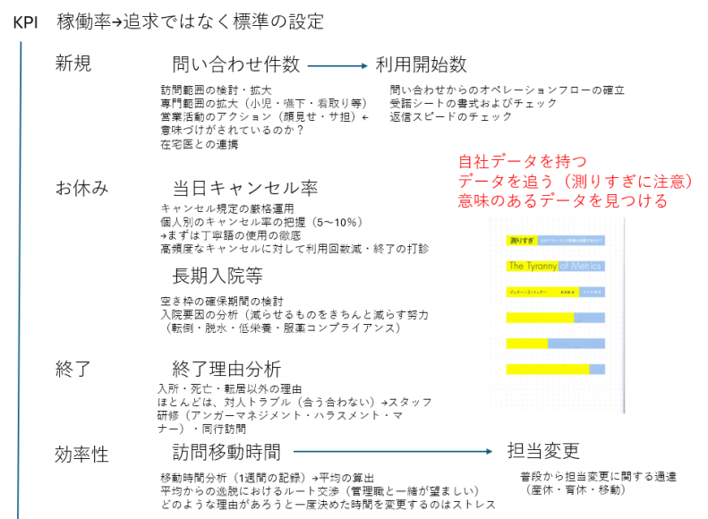 例えば訪問看護において、一番まずいのは月次件数のKPI設定である。
