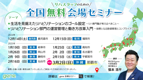 【無料】リハビリテーション部門の運営管理と働き方改革入門~指標となる数値管理とコンプライアンス~那覇会場~