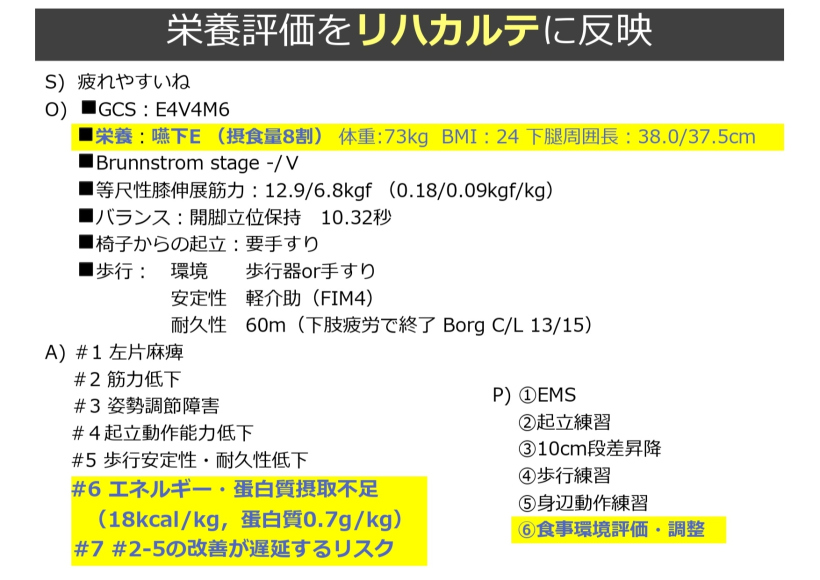 - 栄養「評価」と「介入」の明日から使える実践方法について症例を通じて身につける