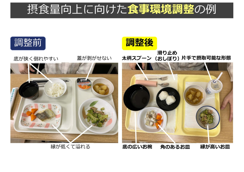 ・低栄養の原因となる摂食機能や口腔状態の評価、介入