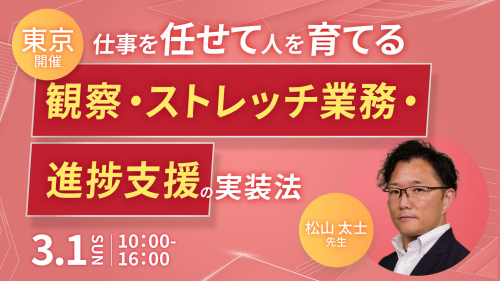 仕事を任せて人を育てるー 観察・ストレッチ業務・進捗支援の実装法~東京会場~
