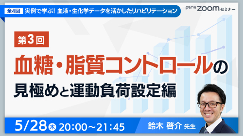 本セミナーでは、血糖および脂質系データを根拠に、リハビリテーション場面における安全かつ効果的な運動負荷設定の考え方を、具体的症例を通して解説します。